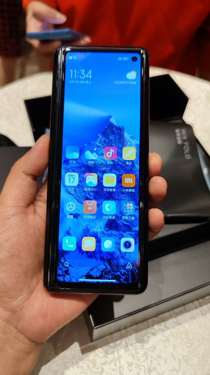 Het scherm aan de binnenkant van de Mi Mix Fold is een 8"-oledpaneel met een resolutie van 2460x1860 pixels een beeldverhouding van 4:3 en een formaat van 16,2x12,3cm, goed voor een oppervlakte van bijna 200 vierkante centimeter. Gebruikers kunnen op het grote scherm multitasken met zwevende vensters, zoals dat op een desktop ook kan.