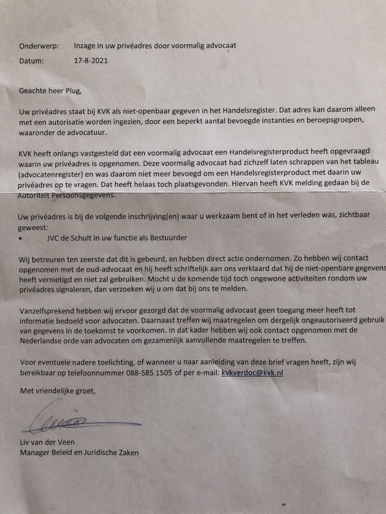 Het advies komt een dag nadat bleek dat de Kamer van Koophandel per ongeluk adressen had gelekt van Tweede Kamerleden. Dat gebeurde uitgerekend nadat bleek dat een advocaat langer toegang had tot het Handelsregister dan noodzakelijk. Het advies van de AP is dan ook geen reactie op dat datalek. Het is een reactie op een vraag die de overheid in februari al stelde. De AP had de brief in juni al naar Keijzer gestuurd, en was toen al van plan het later openbaar te maken.