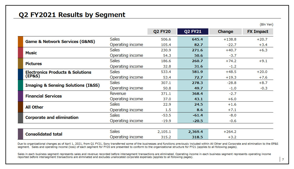 Sony's kwartaalomzet bedroeg omgerekend zo'n 18 miljard euro, 13 procent hoger dan vorig jaar, onder andere vanwege de groei van het Game & Networking Services-segment. De omzet van dat bedrijfsonderdeel steeg met 27 procent. Ook de bedrijfsonderdelen voor muziek en film deden het volgens Sony goed. De operationele inkomsten kwamen uit op omgerekend 2,4 miljard euro. Dat is 1 procent hoger dan hetzelfde kwartaal vorig jaar. De nettowinst bedroeg zo'n 1,6 miljard euro en dat is 54 procent lager dan in de vergelijkbare periode een jaar geleden.