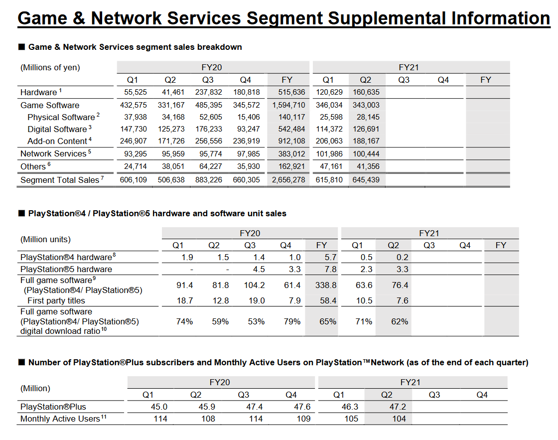 Aan het einde van het afgelopen kwartaal waren er 47,2 miljoen PlayStation Plus-abonnees, en dat waren er 1,3 miljoen meer dan een jaar geleden. Het aantal maandelijks actieve PlayStation Network-gebruikers nam af van 108 miljoen vorig jaar naar 104 miljoen dit jaar. Vorig kwartaal nam het aantal actieve gebruikers ook al af ten opzichte van een jaar eerder. De piek in 2020 heeft vermoedelijk te maken met de lockdowns als gevolg van de coronapandemie.