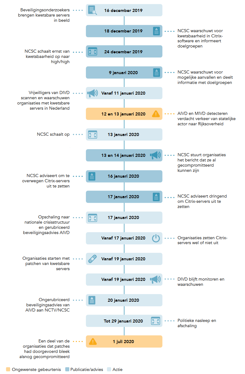 De Onderzoeksraad voor Veiligheid begon het onderzoek naar de Citrix-kwetsbaarheid in juli vorig jaar. Doel daarvan was onder meer om te kijken hoe de overheid heeft gehandeld bij het melden van de kwetsbaarheid en de manier waarop bedrijven die hebben gepatcht. Door de ernstige kwetsbaarheid in Citrix was onder andere remote code execution mogelijk. Veel Nederlandse bedrijven en overheidsinstellingen bleken kwetsbaar te zijn voor het lek.