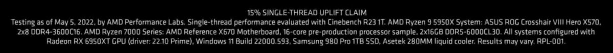 Bij een gelijkblijvend aantal cores maakt dat de weg vrij voor hogere all-coreboostkloksnelheden. Een Blender-demonstratie van een 16-core Ryzen 7000-cpu die AMD gaf, lijkt dat te bevestigen. Daarin was de nieuwe chip 31 procent sneller dan een Intel Core i9-12900K. Die Intel-chip is in de recentste test van Tweakers ongeveer even snel als de Ryzen 9 5950X.