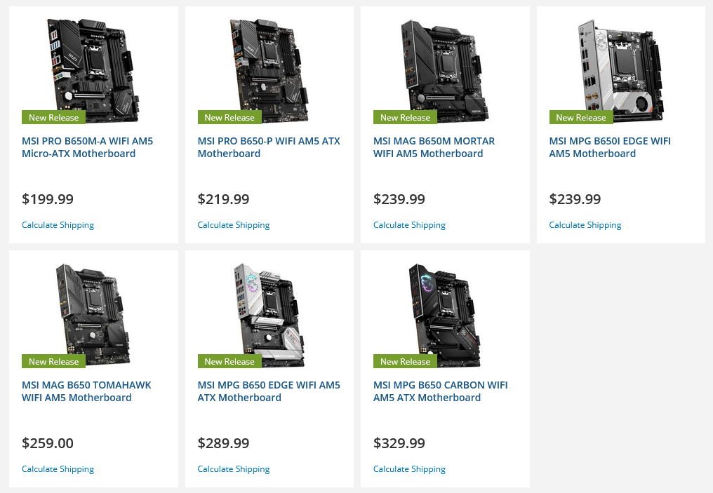 Een Amerikaanse webwinkel heeft verschillende AMD B650-moederborden online gezet op zijn website. De retailer zette zeven verschillende modellen van MSI online. De moederborden kosten 200 tot 330 dollar. Het is niet bekend of dat definitieve prijzen zijn.