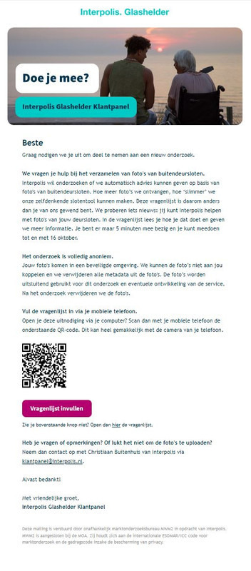 Interpolis stuurt het verzoek naar klanten die meedoen aan het vrijwillige klantenpanel, dat af en toe vragenlijsten krijgt toegestuurd van de verzekeraar. "Deze vragenlijst is anders dan je van ons gewend bent. We proberen iets nieuws: jij kunt Interpolis helpen met foto's van jouw deursloten", schrijft het bedrijf in een mail, die een tweaker ontving en naar Tweakers stuurde. Interpolis vraagt klanten foto's op te sturen van de sloten op hun buitendeuren. De verzekeraar gebruikt die om de Slotentool te verbeteren. Dat is een tooltje op de website waarmee klanten kunnen kijken hoe veilig hun sloten zijn. Momenteel staan daar alleen nog statische vragen op waarbij klanten een selectie moeten maken. Interpolis wil echter onderzoeken of het 'automatisch advies kan geven op basis van foto's van sloten'. "Hoe meer foto’s we ontvangen, hoe ‘slimmer’ we onze zelfdenkende slotentool kunnen maken", schrijft het bedrijf. Interpolis werkt samen met het SKG-keurmerk voor hang- en sluitwerk.