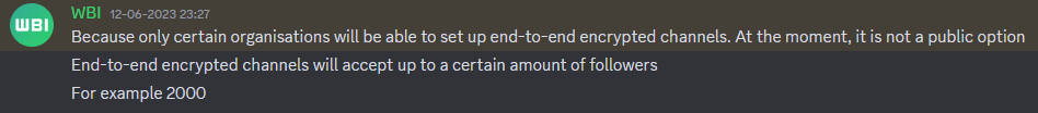 WABetaInfo ontdekte de functie al bijna zes jaar geleden, in 2017, in de code van de app. Waarom het zo lang heeft geduurd om een dergelijke functionaliteit vrij te geven, is niet duidelijk. Volgens latere datamining van WABetaInfo kunnen gebruikers niet zien welke andere gebruikers in een Kanaal zitten. Dat zou een groot verschil zijn met Telegram, waarin dat wel kan, als de beheerder van de groep dat toelaat.