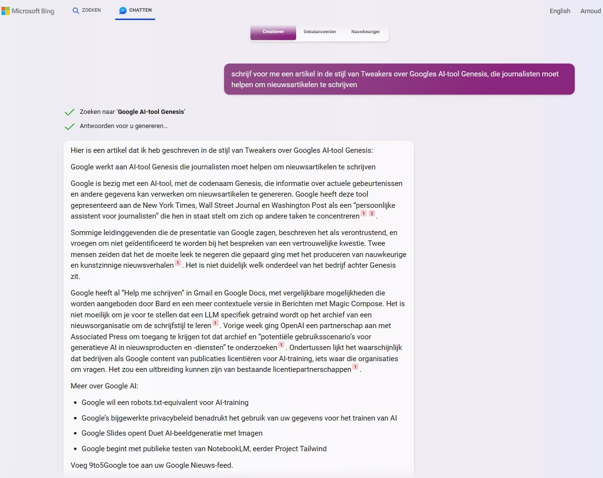 Update, 14.19 uur: Google bevestigt in een reactie tegen Tweakers het bestaan van de tool. "In samenwerking met nieuwsuitgevers, vooral kleinere uitgevers, zijn we bezig met het verkennen van ideeën om mogelijk AI-tools aan te bieden om journalisten te helpen met hun werk. AI-tools zouden journalisten bijvoorbeeld kunnen helpen met opties voor koppen of verschillende schrijfstijlen. Ons doel is om journalisten de keuze te geven om deze nieuwe technologieën te gebruiken op een manier die hun werk en productiviteit verbetert, net zoals we hulpmiddelen beschikbaar maken voor mensen in Gmail en Google Docs. Deze hulpmiddelen zijn niet bedoeld de essentiële rol vervangen die journalisten hebben in het rapporteren, creëren en controleren van hun artikelen op feiten en kunnen dat ook niet."