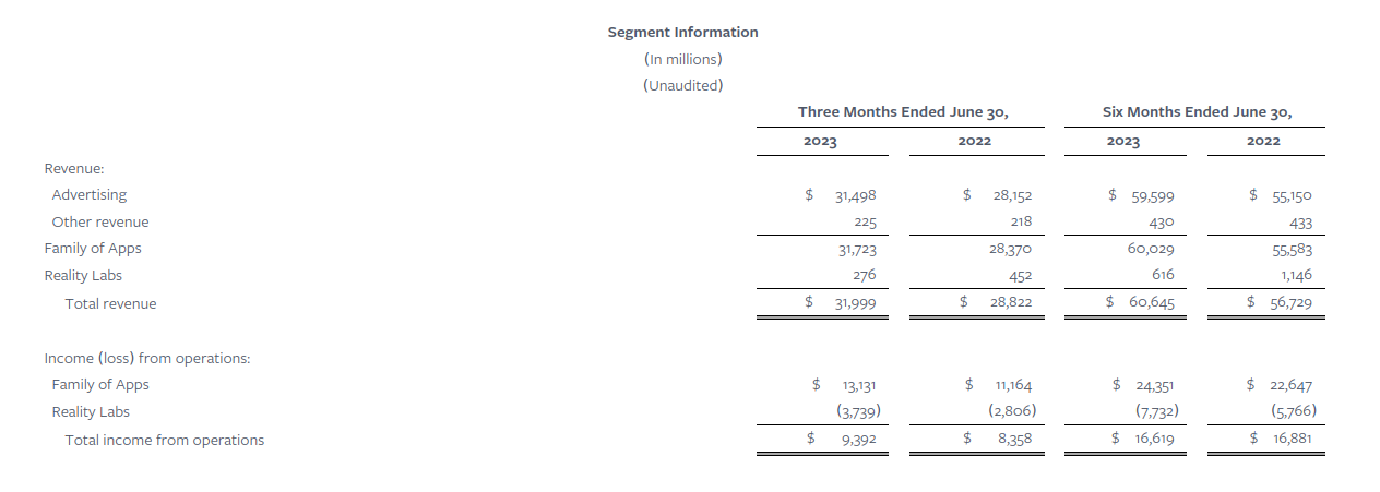 Meta dankt de omzet vooral aan hogere bezoek- en gebruikerscijfers. Op vrijwel ieder meetpunt, van dagelijks tot maandelijks actieve gebruikers, zag Meta een groei van tussen de drie en zeven procent. Ook komt de hogere omzet uit meer advertentievertoningen. Bij de 'Family of Apps', vooral Facebook en Instagram, steeg het aantal vertoonde advertenties met 34 procent, al daalden de gemiddelde inkomsten per advertentie wel.