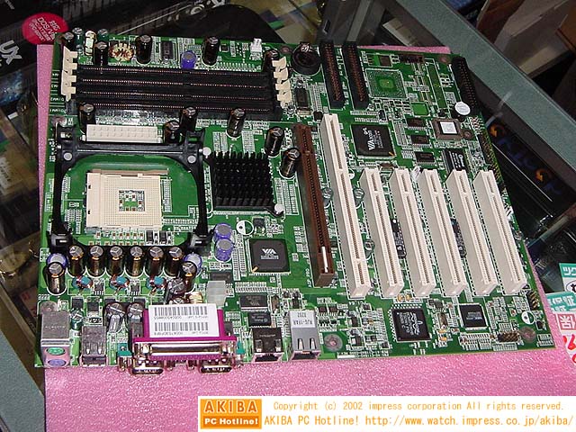 Akiba's plaatjesparadijs toont pics van RioWorks' NUVIA-GL Socket478 Pentium 4 mobo, met een VIA P4X266A chipset. Het bijzondere is de aanwezigheid van één 64bit/66MHz PCI slot naast de AGP Pro gleuf. De verbindingen met de AGP Pro gleuf en 64bit PCI slot worden verzorgd door een VPX-64 (VT8101) chip. Deze combinatie zou een relatief goedkope middenweg kunnen zijn voor servertoepassingen. Verder is de plank uitgerust met vier DIMM banken voor een totaal van 4GB ECC registered PC2100/1600 DDR SDRAM, vijf 32bit PCI sloten, twee USB 2.0 aansluitingen, ATA100 ondersteuning en een10/100 BASE-T Ethernet controller. De site van RioWorks vermeldt ook de support voor Northwood (1,5GHz - 2,4GHz) met 533MHz FSB.