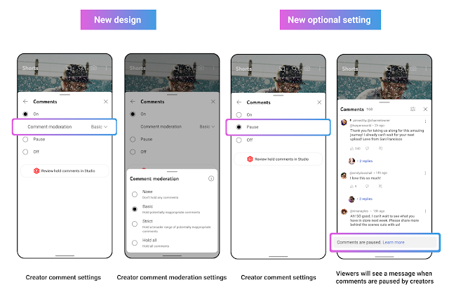 Kanaalbeheerders konden er al voor kiezen om de reactiemogelijkheid in zijn geheel uit te schakelen, maar dan worden de al gepubliceerde reacties ook verwijderd. Beheerders kunnen er ook voor kiezen om een deel of alle reacties pas online te plaatsen als deze zijn goedgekeurd. De nieuwe pauzeeroptie komt hier dus bij.