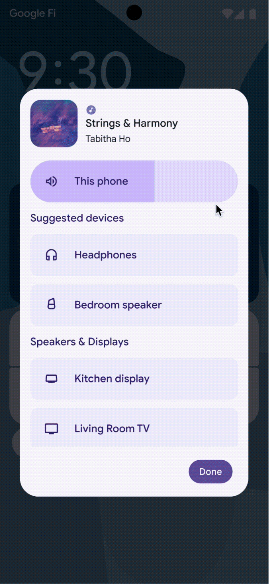 Google komt ook met een nieuwe output switcher voor Android. Dat is het menu waarmee het volume kan worden geregeld. Het wordt in Output Switcher 2.0 mogelijk om het geluid te wisselen tussen verbonden apparaten en de volumebediening wordt verbeterd met een nieuwe UI. Voor Pixel-apparaten wordt het makkelijker om onderling mediabestanden uit te wisselen. Google voegt voor ontwikkelaars ook een optie toe om een 'persistent Cast-pictogram' te tonen. Daarbij staat het Cast-icoon altijd in beeld als gebruikers dat willen, in plaats van dat dat dynamisch gebeurt terwijl de gebruiker dat mogelijk niet wil.