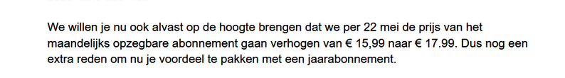 Viaplay, die in Nederland de uitzendrechten voor het aankomende Formule 1-seizoen in handen heeft, verhoogt per 22 mei zijn abonnementsprijs van 15,99 naar 17,99 euro per maand. De streamingdienst heeft klanten per e-mail op de hoogte gesteld van de prijswijziging.