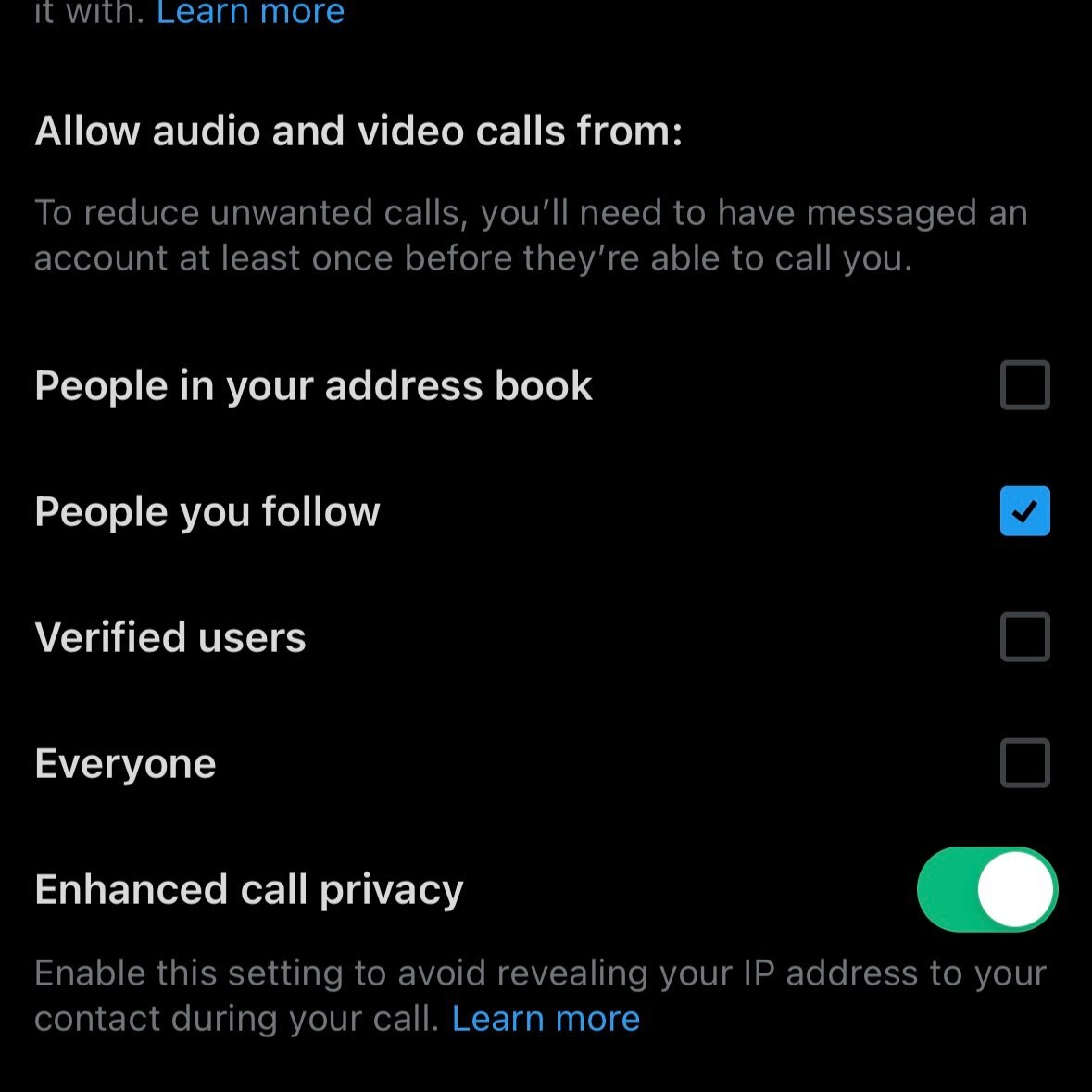 Gebruikers kunnen nu ook in hun X-profielinstellingen toestaan dat iedereen ze mag bellen. Voorheen waren de enige opties om alleen oproepen te ontvangen van gebruikers die ze volgen, alleen van gebruikers die in hun adresboek staan of alleen van geverifieerde gebruikers. Een gebruiker moet wel eerst een privébericht hebben gestuurd naar een account voordat de laatstgenoemde partij een oproep kan starten. De mogelijkheid om via X gebeld te worden kan ook volledig worden uitgeschakeld.