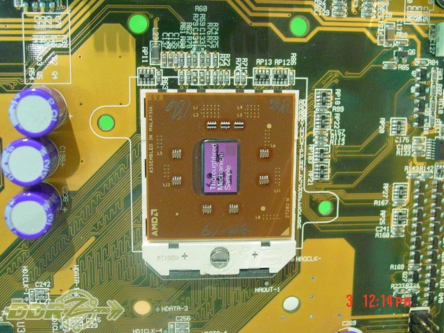 De mannen die namens The DDR Zone computerbeurzen afstruinen, hebben plaatjes geschoten van een VIA referentieplankje waarop AMD's Mobile Athlon XP Thoroughbred naakt te bewonderen is. Iets dat we jullie niet wilden onthouden. Deze Mobile uitvoering heeft een Socket563 en een mPGA behuizing, die een stuk kleiner en lager is (33 x 33 x 4,74mm), dan die van de vorige Mobile Athlon 4 in low-profile PGA uitvoering (49,5 x 49,5 x 6,44mm). Dat is natuurlijk gunstig voor notebooks, waarin iedere millimeter telt. Eerder deze week had dezelfde site ook een foto van een ontblootte Hammer geschoten -zonder heatspreader dus, die je hier kunt bewonderen.