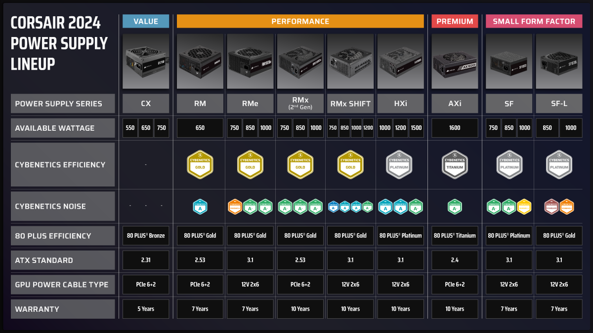 "Corsair gaat uitsluitend gebruikmaken van de geavanceerdere certificeringen van Cybenetics voor zowel efficiëntie als geluidsproductie en afstappen van de 80 Plus-certificering", schrijft de fabrikant in een persbericht. Volgens de psu-maker is de testprocedure van Cybenetics uitgebreider, met meer metingen, en heeft deze meer raakvlakken met de praktijk. Ook is er een losse Noise-certificering voor geluidsproductie. Corsairs psu's van de afgelopen jaren hebben zowel een 80 Plus- als een Cybenetics-keuring, maar bij toekomstige modellen verdwijnt 80 Plus dus.