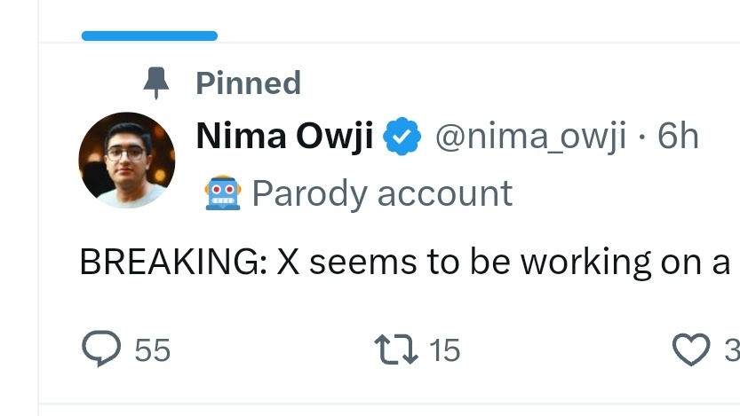 Qua parodie accounts is het verschil tussen de realiteit van huidige politici en tech miljonairs vs hun parodie zo klein dat dit een begrijpelijke stap is. Je weet het gewoon niet meer, alles lijkt wel een grap tegenwoordig :+