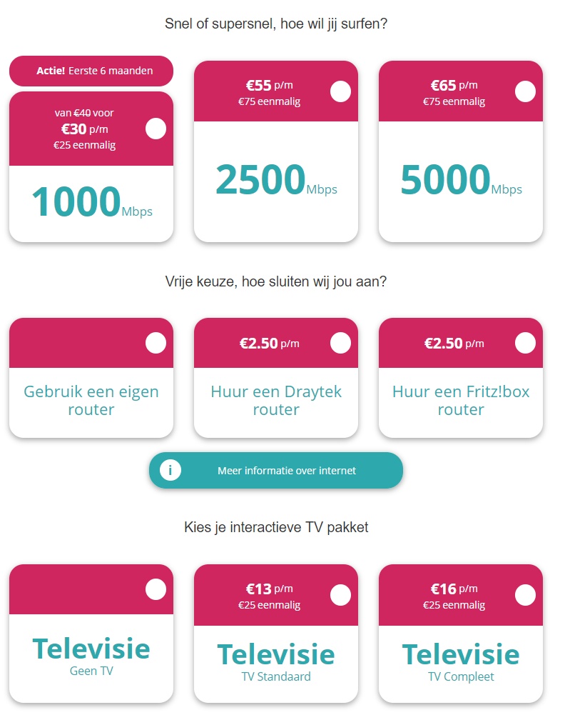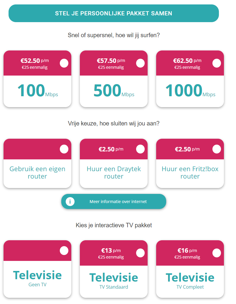 Open Dutch Fiber | € 44,95 | € 46,95 | € 2,00 |