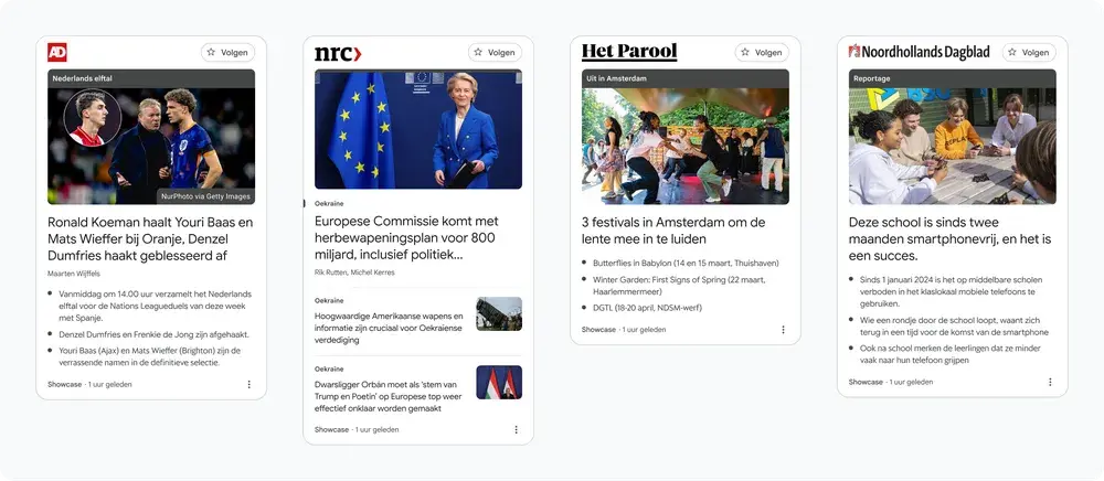 Google brengt het Nieuws Showcase-programma uit in Nederland. Aangesloten nieuwsorganisaties kunnen een eigen paneel in Google Nieuws en Discover vullen met een selectie van nieuwsberichten. Via deze weg is beperkte toegang tot betaalde content mogelijk.