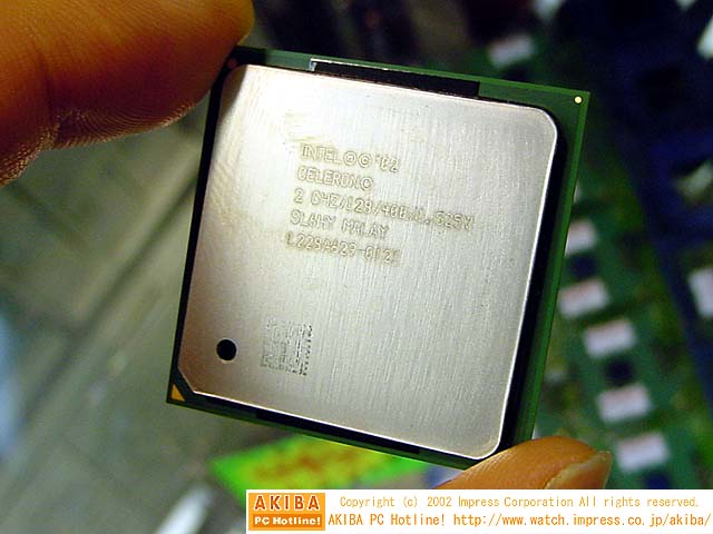 In Japan komt niet alleen de zon vroeger op, ook het grijze circuit komt vroeger uit de veren. Op Akiba's plaatjesparadijs zien we daarvan het resultaat in de vorm van de officieel nog niet uitgekomen Intel Celeron 2GHz processor, die in Japan inmiddels al in de etalages is verschenen. Het prijskaartje bedraagt voor de vroege vogels 13.500 yen, wat omgerekend zo'n 115 euro is. De Celeron 2GHz is Intel's binnenkort te lanceren top-budget processor, gebakken op de 0,13micron Northwood core, maar dan met een L2 cache van 128KB. Dit terwijl hier nog gewag gemaakt werd van een cache verdubbeling naar 256KB. De FSB bedraagt 400MHz en processorcore vraagt naar een spanning van 1,525 Volts. De 0,13micron core biedt waarschijnlijk, gezien de bereikte kloksnelheden in de Pentium 4 reeks, leuke perspectieven voor overklokkers. Ook zal de warmteafgifte door de verkleinde core lager uitvallen.