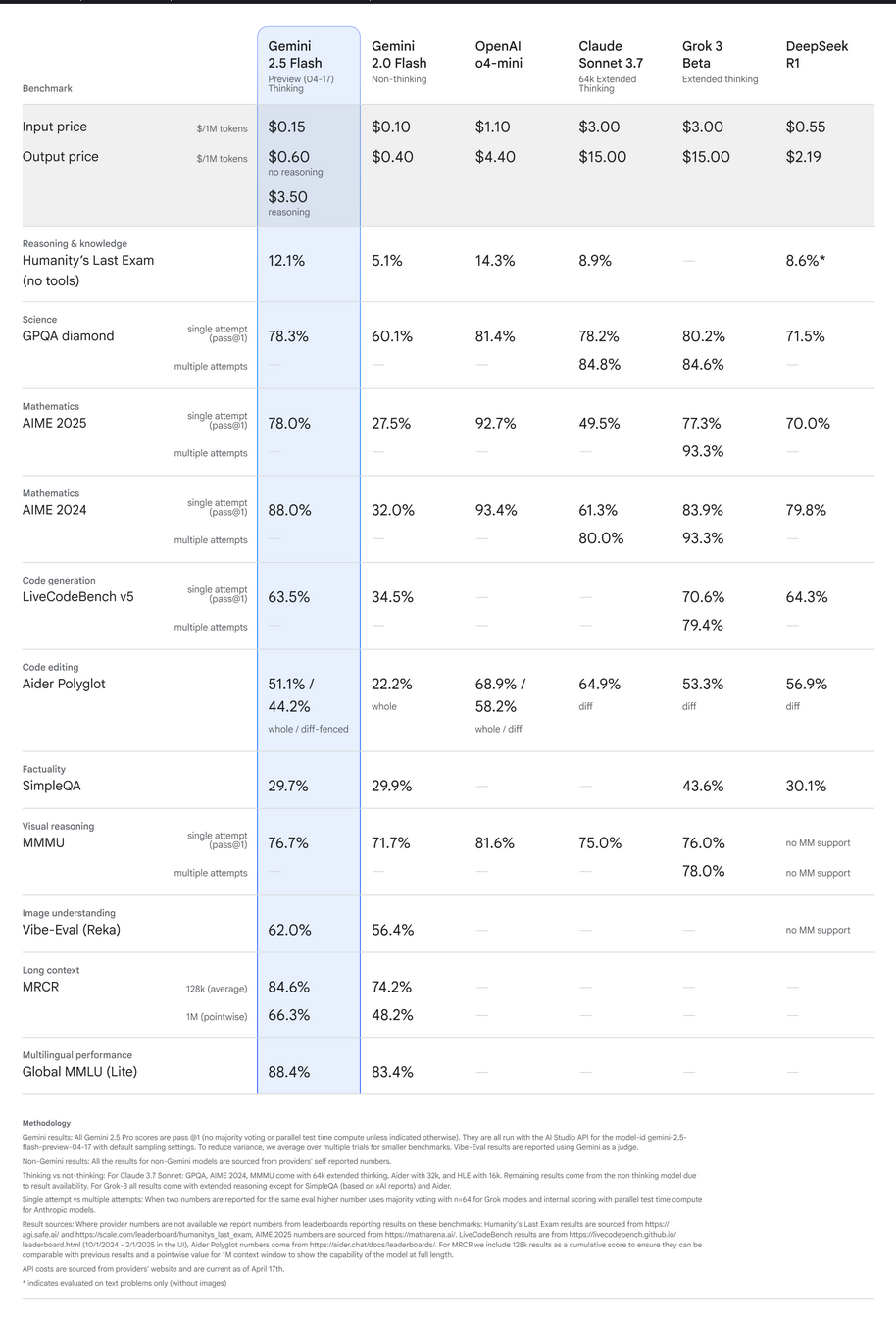 Gemini 2.5 Flash heeft volgens Google 'een grote upgrade van zijn redeneermodellen' gekregen In sommige benchmarks, met name die rondom wiskundige en wetenschappelijke vraagstukken zoals de AIME-competitie, maakt versie 2.5 volgens Google grote sprongen. In benchmarks rondom bijvoorbeeld het analyseren van afbeeldingen is de verbetering tegenover versie 2.0 iets minder groot.