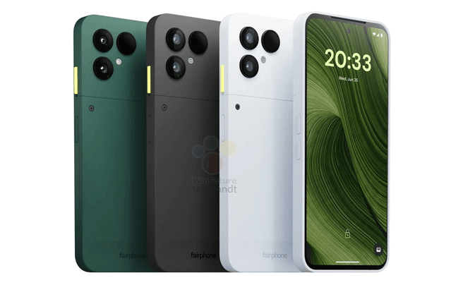 De aankomende Fairphone 6 is te zien op uitgelekte marketingafbeeldingen in handen van WinFuture. De afbeeldingen tonen dat de Nederlandse fabrikant dit jaar kiest voor een nieuw ontwerp en dat het toestel een nieuwe fysieke knop krijgt.