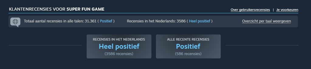 Update, 10.30: In een vorige versie van het artikel stond dat de recensies worden gebaseerd op de moedertaal van de gebruiker. Dat is echter niet geheel correct, aangezien de recensies worden gebaseerd op de ingestelde taal van Steam. Dat hoeft dus niet per se de moedertaal te zijn. Het artikel is hierop aangepast.