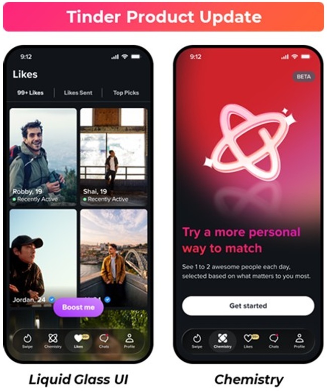 Match Group hoopt dat de Chemistry-functie, die kunstmatige intelligentie en deep learning gebruikt, swipe fatigue tegengaat. Bij dit fenomeen zijn gebruikers het beu om langdurig te swipen en datingapps te gebruiken. De Chemistry-functie moet dit tegengaan door 'zeer relevante profielen' te tonen die moeten zorgen voor betere matches en gesprekken. Chemistry is een belangrijke pijler voor Tinders strategie voor 2026, zegt Match Group.