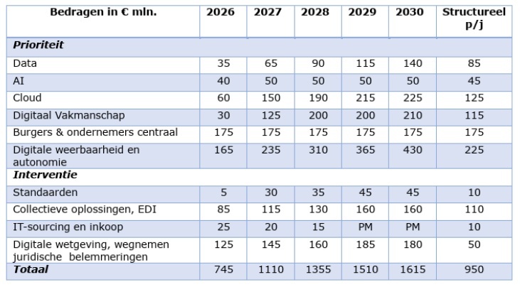 De investeringen vallen onder de Nederlandse Digitaliseringsstrategie, kortweg NDS. Onder deze strategie werken provincies, gemeenten, waterschappen en publieke dienstverleners samen 'om als één overheid gezamenlijk en onder strakkere politieke regie' op te trekken. Van Marum zegt dat uiteindelijk een volgend kabinet moet gaan over de daadwerkelijke investeringen. De staatssecretaris verwacht in de eerste helft van komend jaar 'een meer volledige investeringsagenda op te kunnen leveren'.