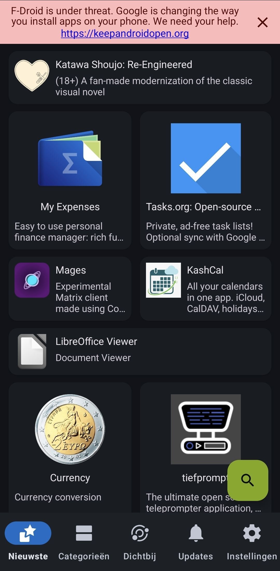 Opensourcedownloadwinkel F-Droid is begonnen met het tonen van banners om mensen te leiden naar hun campagnesite Keep Android Open. Op die site voert F-Droid actie tegen de maatregelen van Google voor verplichte identificatie van Android-ontwikkelaars.