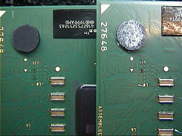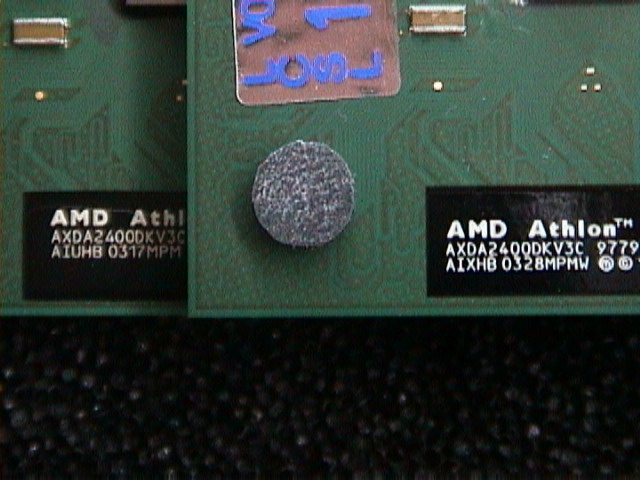 Op de onderstaande plaatjes zijn de minimale verschillen te zien tussen een echte Athlon XP-processor en een namaak versie. Op beide foto's zijn linkse processors, de vervalste. Dat valt op te maken uit onder andere de hogere positie van de tekst op het zwarte etiket en de verschillen in de L11-bruggen. Beide plaatjes zijn beter te bekijken door erop te klikken. Dit zijn niet de enige verschillen die ontdekt zijn, zo is het core-voltage te hoog en zijn er ook aanpassingen gemaakt aan de L3-bruggen. Deze en andere bijbehorende foto's zijn te bezichtigen op de site www.overclock.co.uk.
