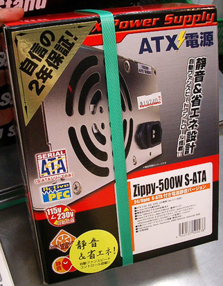Op het Japanse impress Watch is een artikel over de Zippy-500W SATA verschenen. Deze voeding levert, zoals de naam al doet vermoeden, 500W en beschikt over SATA-powerconnectoren. Bovendien is hij gericht op de i915-chipset van Intel, bekend als Grantsdale, en beschikt hij over een ATX-connector met vierentwintig pinnen. Daarnaast is er echter ook een twintig-pins-connector aanwezig zodat deze voeding voor elk moederbord geschikt is en men niet verplicht is een nieuwe voeding aan te schaffen als het moederbord geüpgradet wordt. Dankzij de gegarandeerde 32A op de 12V-lijn is deze voeding bovendien ook geschikt voor dual-processoropstellingen. Dit vereist natuurlijk wel voldoende koeling en daarvoor is een 80mm-ventilator aanwezig die op een belasting van 200W ongeveer 35dB geluid genereert. Voor ongeveer 150 euro verandert deze krachtbron van eigenaar.