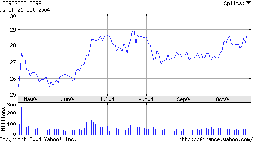 Aandelenkoers Microsoft (21 april tot 21 oktober) | Klik voor een grotere versie