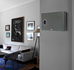 LG Electronics heeft onlangs in Zuid-Korea een DLP-projector gepresenteerd die geschikt is voor wandbevestiging, zoals een spiegel of schilderij. Door een L-vormige constructie van de projectiecomponenten heeft LGe een platte en strak vormgegeven beamer kunnen creëren, waarbij de projectielens haaks staat ten opzichte van de overige componenten, in plaats van in het verlengde daarvan zoals te doen gebruikelijk is. Optioneel kan de beamer ook op een sokkel geplaatst worden.