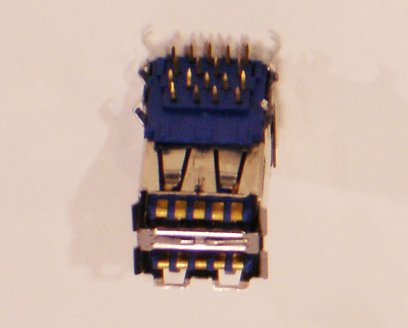 Op de Consumer Electronics Show in Las Vegas zijn de eerste usb 3.0-connectors en -sockets gespot. Ook de nieuwe mini-sockets van de standaard werden getoond, maar de optische variant van de connectors ontbrak.