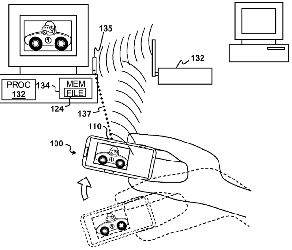 Een tweede patentaanvraag, eveneens van Harrison, beschrijft nog een mogelijke toepassing voor een draagbare gameconsole of andere portable gadget. Harrison beschrijft in dit document hoe bestanden door middel van gebaren naar andere apparaten, bijvoorbeeld computers of printers, gestuurd kan worden. Daarbij zou de techniek gebruik kunnen maken van ingebouwde bewegingssensoren en bestaande draadloze communicatietechnieken.
