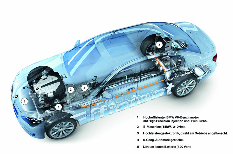 BMW noemt zijn hybride niet voor niets 'mild': de V8 levert een vermogen van 407pk, wat in schril contrast staat met de 20pk die door de elektrische motor in de versnellingsbak wordt geleverd. De elektrische motor moet niet alleen de rij-eigenschappen verbeteren, maar geeft BMW ook het recht de auto een hybride te noemen. Het zuinige gedrag van de auto wordt versterkt door een techniek die BMW Brake Energy Regeneration noemt. Wanneer de auto remt, wordt elektriciteit opgewerkt die weer herbruikt kan worden.