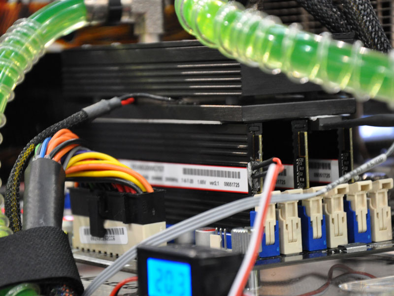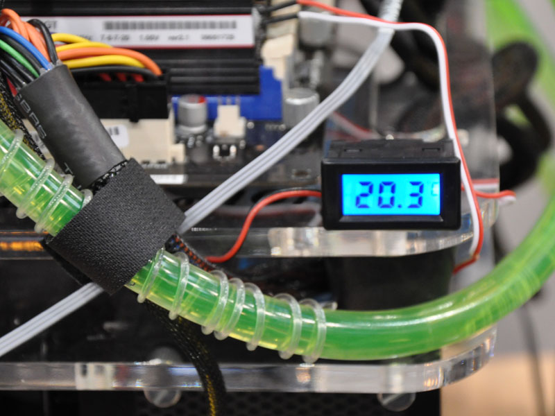 De thermo-elektrische koeler zou het geheugen ongeveer tien tot twintig graden extra moeten kunnen koelen. In combinatie met de tec zette Corsair op de Cebit een waterkoelblok voor het Dominator-geheugen in. De tec heeft een opgenomen vermogen van 140W en zou alleen bij high-end geheugen ingezet hoeven worden wanneer enkele extra megahertzen uit de dimms geperst moeten worden. In de opstelling werd de temperatuur voortdurend gemeten en op de thermometer viel af te lezen dat het geheugen steeds op een temperatuur van ongeveer 20 graden Celsius bleef.