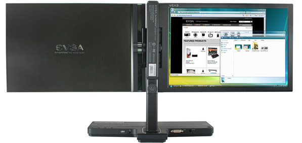 Het Amerikaanse EVGA is vooral bekend van zijn op Nvidia-hardware gebaseerde moederborden en videokaarten, maar het bedrijf heeft nu een zijstap naar de lcd-markt gemaakt. De InterView 1700 bestaat uit een voet waarop een houder met twee lcd-panelen geplaatst wordt. De panelen zijn gefabriceerd door het Taiwanese AUO en bieden beide een resolutie van 1440x900 pixels. De schermen hebben verder een helderheid van 220cd/m2, een responstijd van 8ms, een contrastverhouding van 500:1 en een horizontale kijkhoek van 45 graden, waarmee ze duidelijk niet geschikt zijn voor bijvoorbeeld gamen. De mogelijkheid om de panelen onafhankelijk van elkaar te kunnen draaien en kantelen moet vooral zakelijke klanten aanspreken, hoopt EVGA. Een van de twee schermen kan bijvoorbeeld volledig omgeklapt worden, zodat werknemers die tegenover elkaar zitten elk naar hun eigen scherm kunnen kijken.