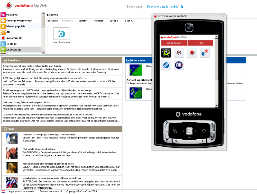 Vodafone lanceert ergens in de komende weken MyWeb, de opvolger van de huidige mobiele portal Live. MyWeb bestaat uit een startpagina op pc en mobiel met widgets en markeert het begin van Vodafone als software-aanbieder.