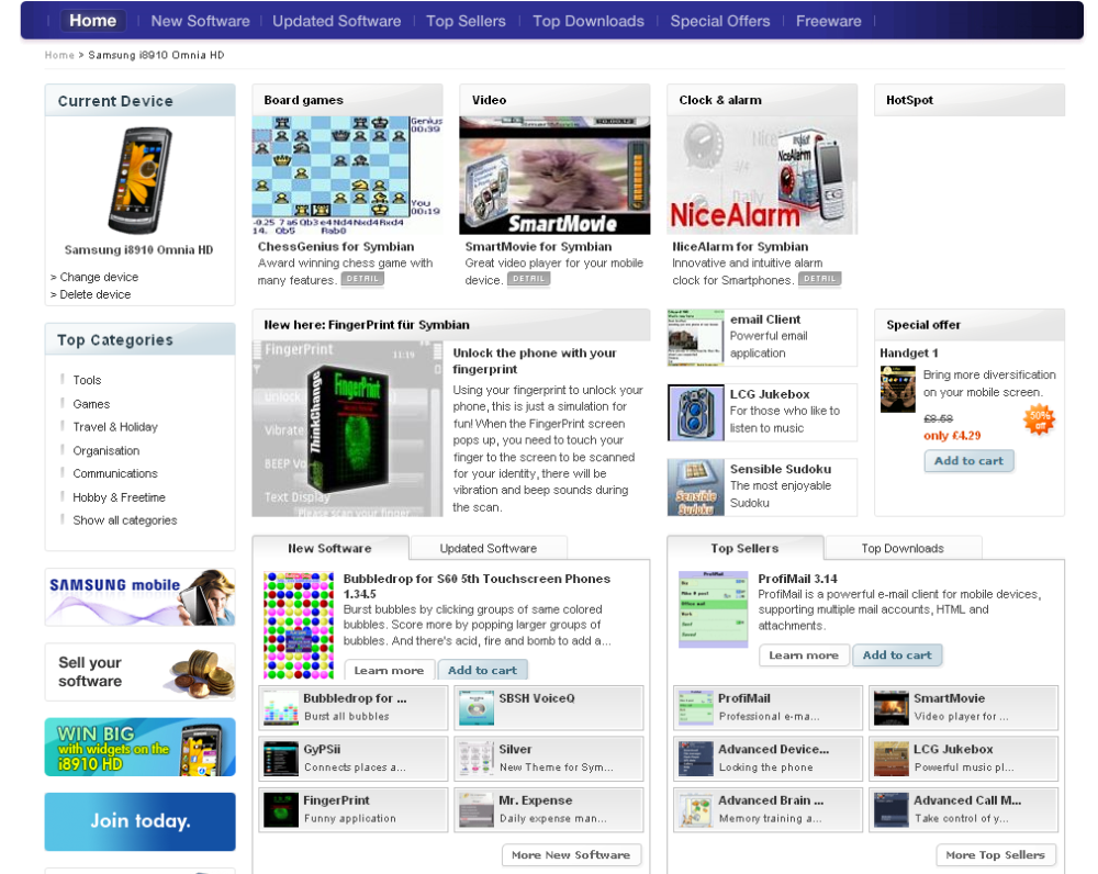 Downloadwinkels van mobieltjesfabrikanten zijn het afgelopen jaar als paddestoelen uit de grond geschoten. Apple begon in juli vorig jaar met zijn App Store. Inmiddels hebben Nokia, Sony Ericsson, Blackberry-maker RIM en LG ook hun eigen applicatieshop. Softwaremakers Microsoft en Symbian Foundation hebben eveneens eigen downloadwinkels in de maak. Die van Symbian is bedoeld voor ontwikkelaars: via de Symbian-winkel kunnen ontwikkelaars hun applicatie in één keer tegelijkertijd aanbieden in de winkels van onder meer Nokia, Samsung en Sony Ericsson, die allemaal Symbian-applicaties aanbieden.