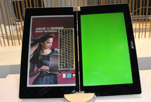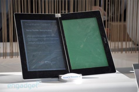 Asus werkt aan een Eee-reader met een duo-kleurentouchscreen die net als een boek dichtgevouwen kan worden. Asus brengt naast deze premiumversie een budgetmodel uit en geeft de reader notebookspecificaties als een webcam mee.