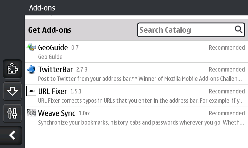 Firefox ondersteunt veel add-ons die ook voor de desktopversie beschikbaar zijn. Zo zijn AdBlock en NoScript er al voor de mobiele versie van Firefox. Daarnaast is Weave als add-on te installeren: met Weave kan een gebruiker de geschiedenis en bookmarks uitwisselen met de desktopversie van Firefox. Ook openstaande tabbladen kunnen worden gesynchroniseerd.