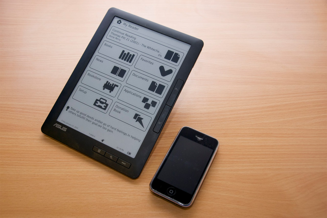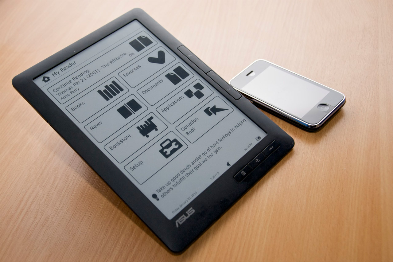 Asus heeft op zijn Engelse Flickr-account de eerste foto's geplaatst van de DR-950. Deze e-reader heeft een 9"-e-paper met een resolutie van 1024 bij 768 pixels en is aanraakgevoelig. De DR-950 is dunner dan een iPhone 3GS.