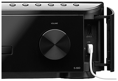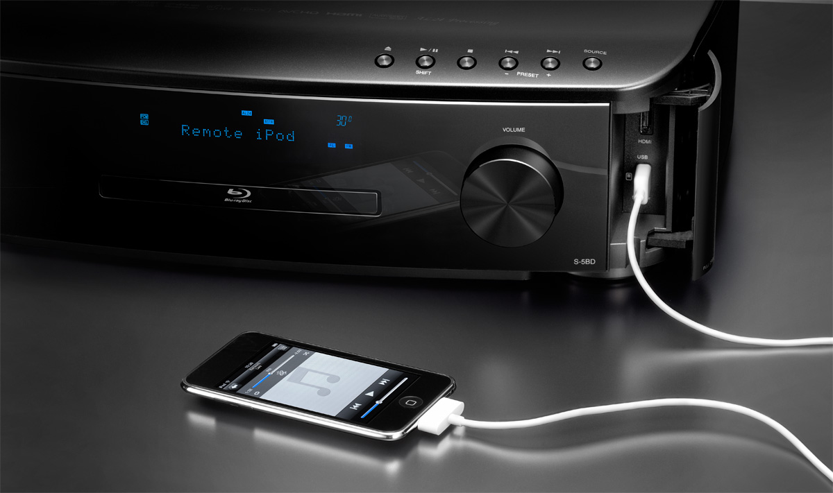 Aan de achterkant zijn twee hdmi-ingangen terug te vinden die de nieuwe 1.4-standaard ondersteunen. Audiobronnen kunnen via de analoge ingangen of via de optische en coaxiale s/pdif-ingangen worden aangesloten. Verder heeft het apparaat nog aansluitingen voor ethernet, een fm-antenne, s-video, composiet en rs-232. Aan de voorkant zijn achter twee klepjes een usb-poort met iPod-ondersteuning, een extra hdmi-poort, een sd-kaartlezer en een hoofdtelefoonaansluiting weggewerkt. De S-5BD komt in april beschikbaar en krijgt een adviesprijs van 1999 euro.