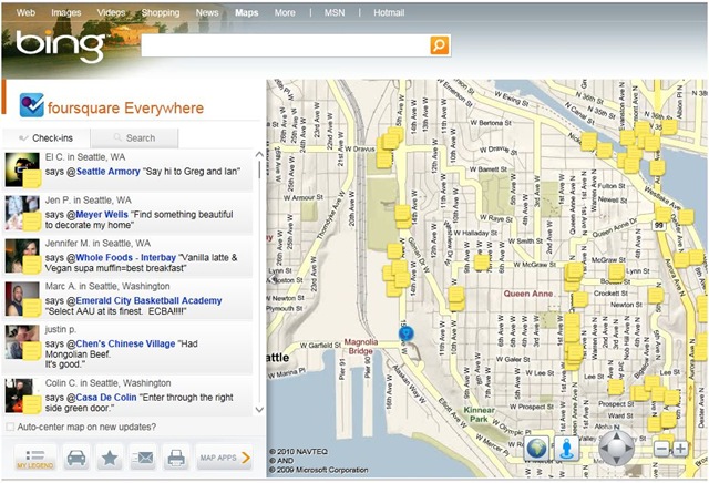 Microsoft gaat locatieafhankelijke diensten van Foursquare inbouwen in Bing. Met de communitydienst kunnen gebruikers een informatielaag aan de kaartgegevens toevoegen, zodat zij op de kaart kunnen zien wat er in de omgeving gebeurt.