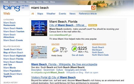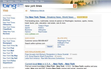 Naast het toevoegen van de communitydienst gaat Microsoft zijn zoekdienst van meer functies voorzien. Aan de zoekresultaten worden snelkoppelingen toegevoegd. Door middel van deze quick tabs kunnen de zoekresultaten worden uitgebreid met bijvoorbeeld locaties, gegevens over het weer en gebeurtenissen.