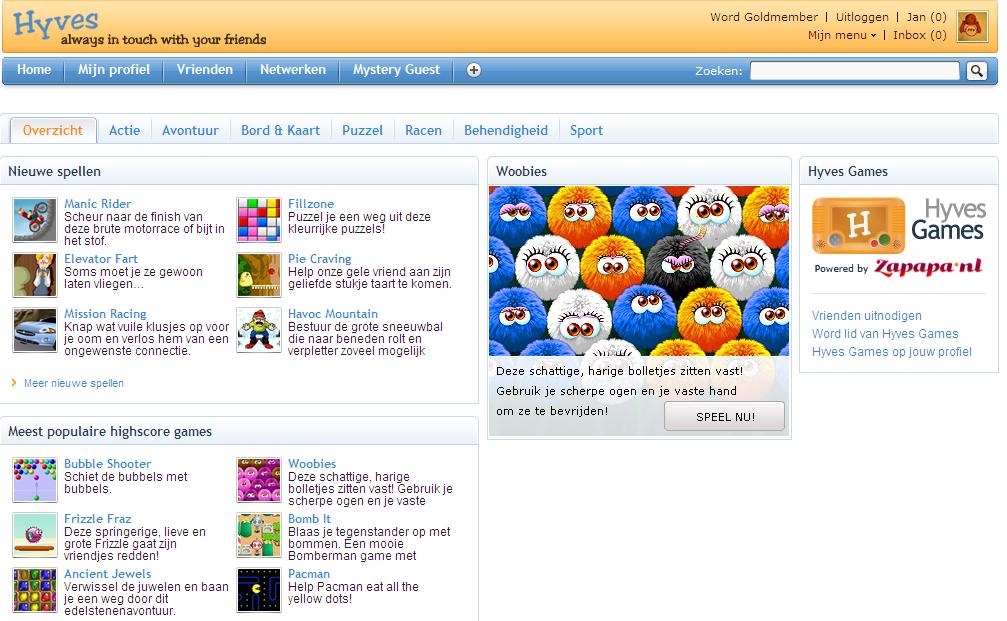 Sociale-netwerksite Hyves heeft een gameplatform gelanceerd. In samenwerking met het Nederlandse Spil Games biedt Hyves zijn leden meer dan driehonderd eenvoudige online-games. Dit aantal zal de komende tijd nog groeien.