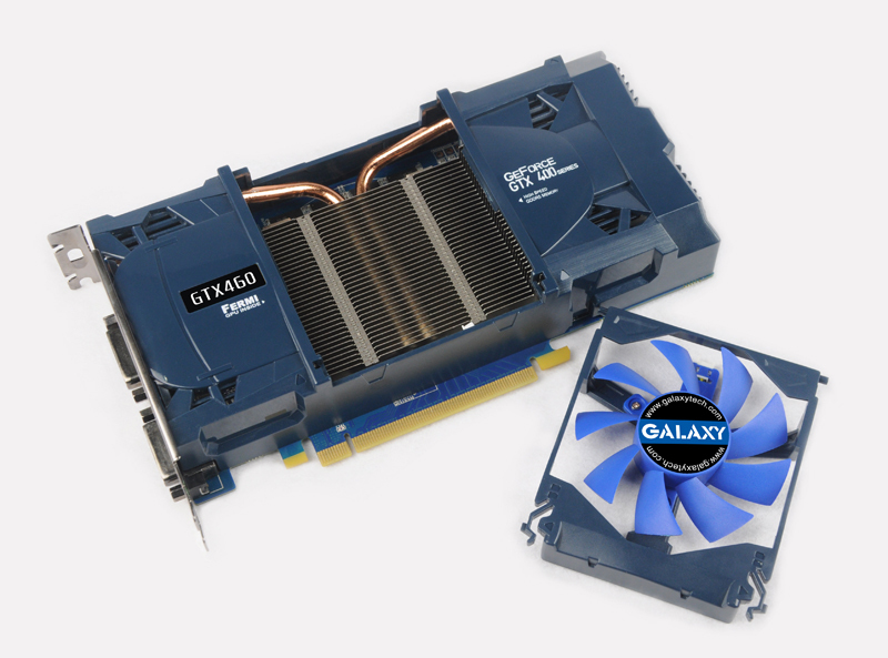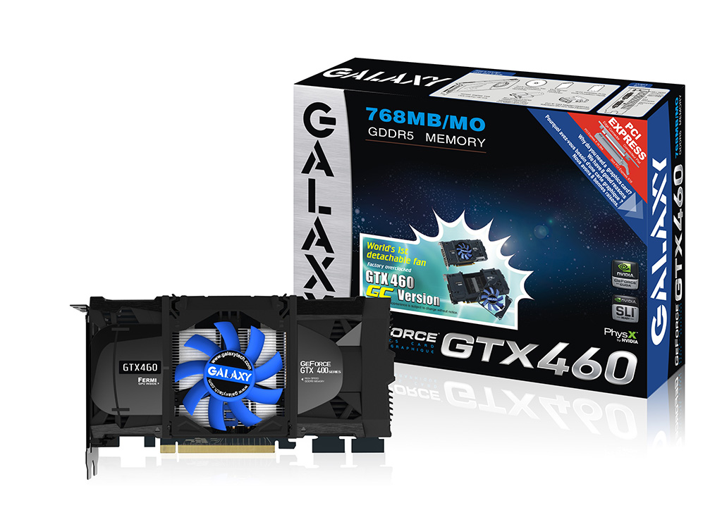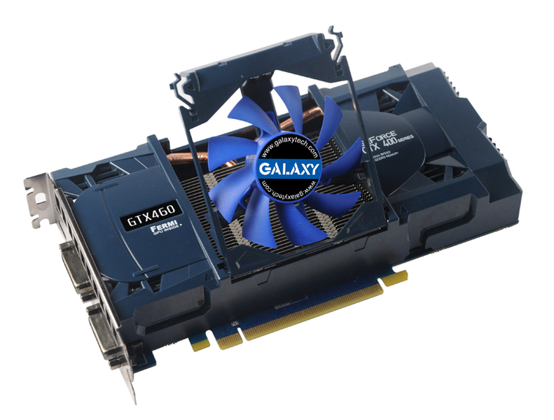 Galaxy heeft vier GTX 460-videokaarten gepresenteerd. De grafische kaarten zijn allemaal overgeklokt en voorzien van een koeler met een vervangbare ventilator. Met de bijgeleverde software kunnen de kaarten nog verder worden overgeklokt.