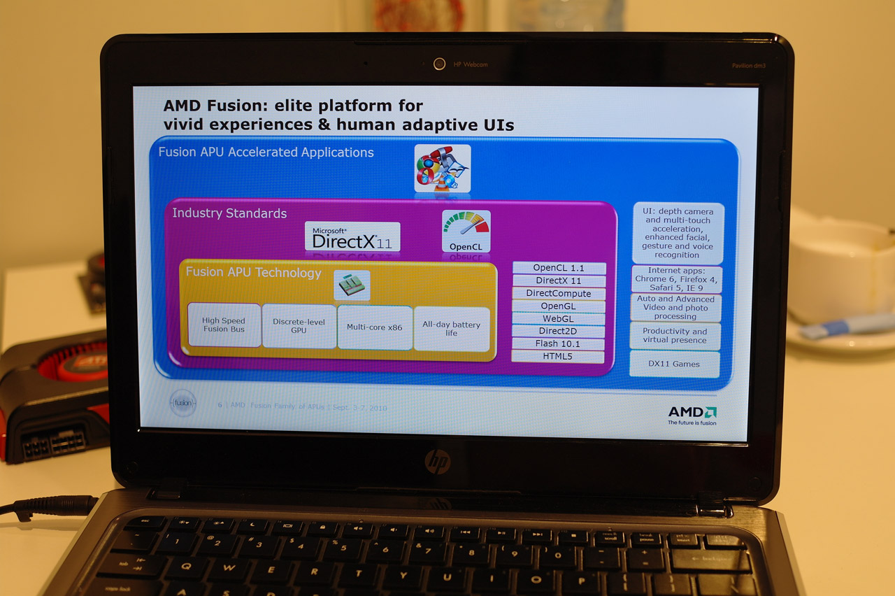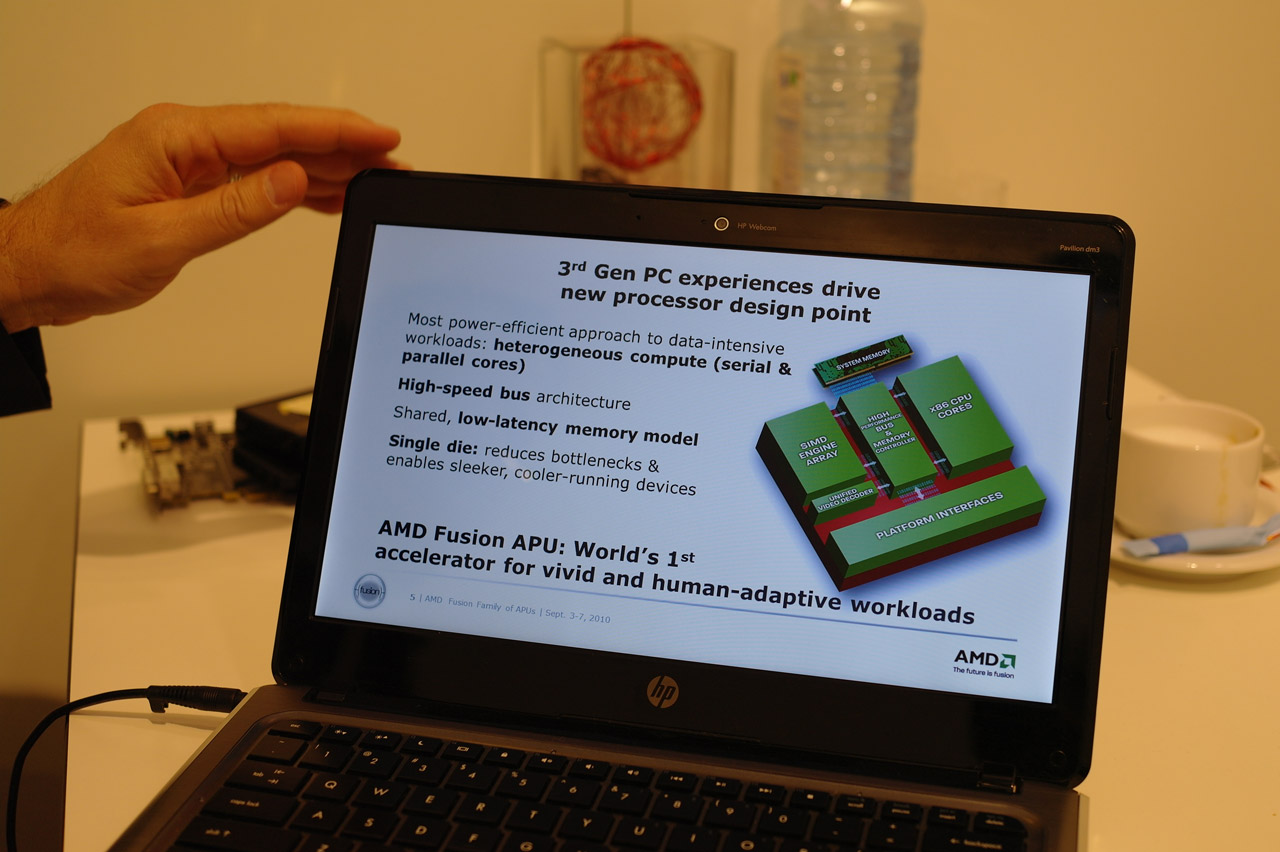 Ook werd een 1080/24p-filmpje, met een bitrate van 9727Kbps, getoond waarbij door het filmpje geskipt werd zonder dat er vertraging optrad. Daarnaast was er een korte demonstratie van een PowerPoint 10-presentatie, die rijkelijk met animaties voorzien was. Vooral de UVD3-component op de Fusion-chip wordt door deze laatste twee testen aangesproken.