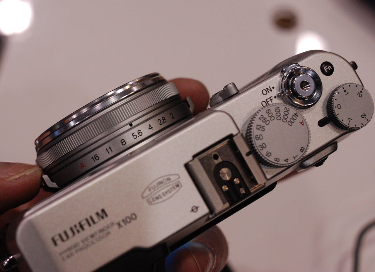 Fujifilm heeft op de CES-beurs een deels functionerende mockup getoond van zijn FinePix X100-compactcamera. De high-end camera zal in maart in de winkels liggen met een adviesprijs tussen de 1000 en 1200 dollar.