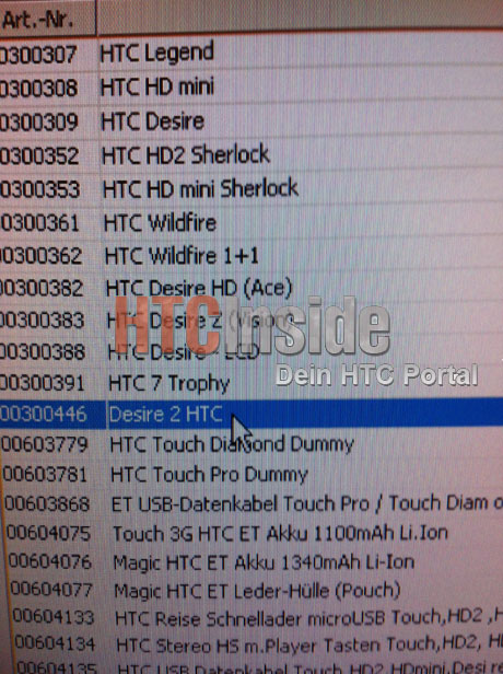Tevens dook de naam Desire 2 op in een intern voorraadsysteem van Vodafone Duitsland. Het is overigens niet de eerste keer dat er namen van HTC-telefoons uitlekken via het Vodafone-systeem. Zo werden de Desire HD en Desire Z ook ontdekt via Vodafone Duitsland.